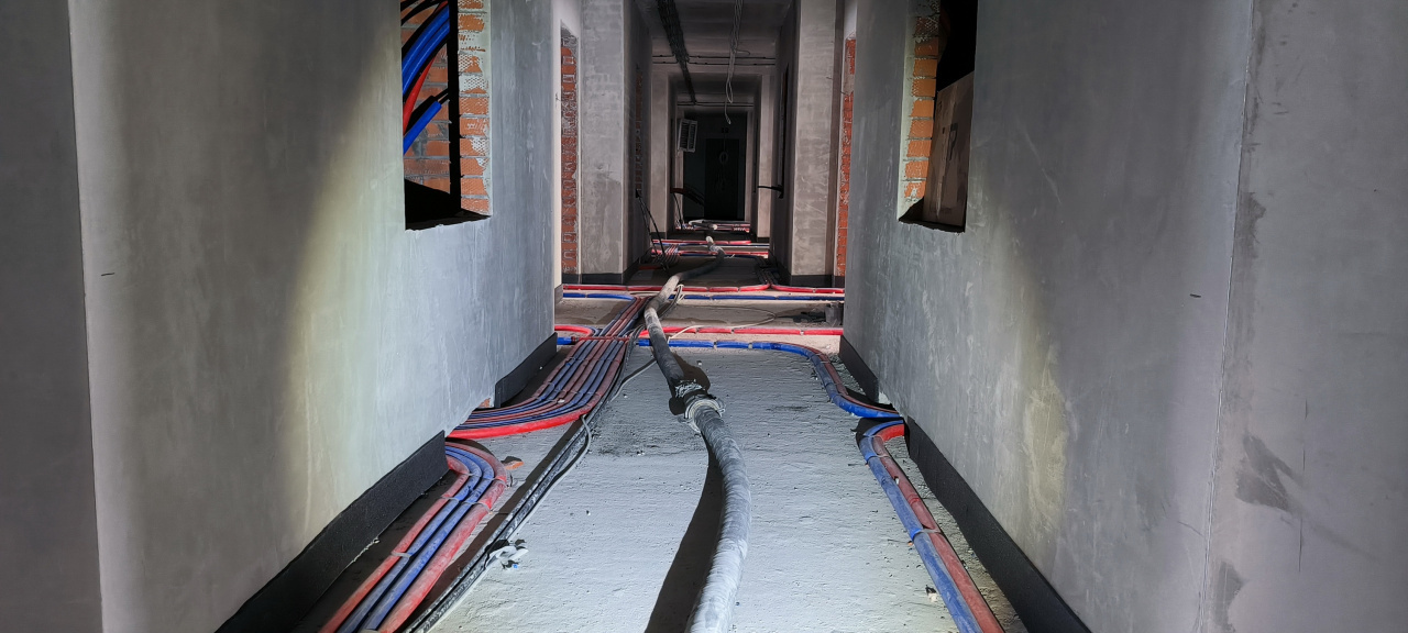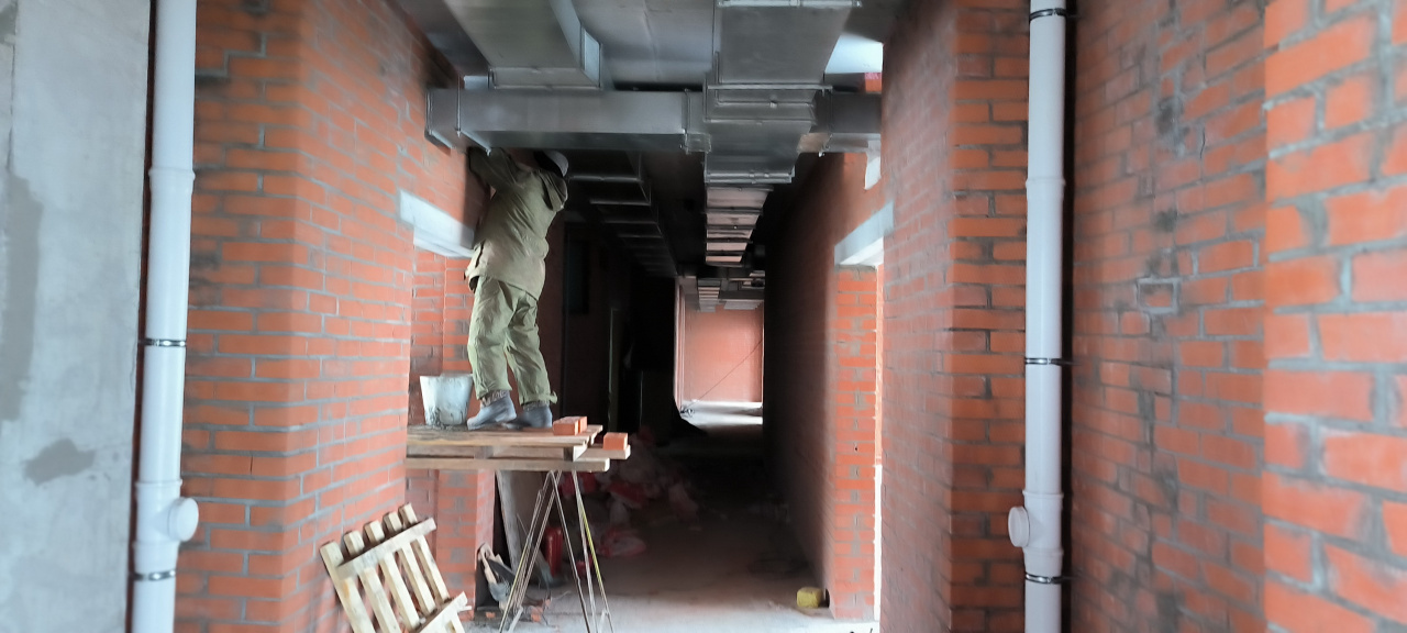 При этом внутри здания работы не останавливались даже в новогодние каникулы. Отделка помещений, монтаж вентиляционных коробов, тепловых камер, канализационных стояков, трубопроводов и электропроводки ведется активно и с огоньком. В январском отчете можем показать результаты многих этапов таких работ.