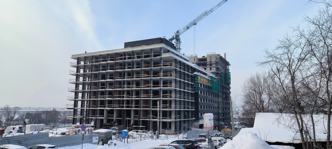А что на стройплощадке? Строится пятый этаж, идет засыпка пазух по периметру здания, готово массивное перекрытие арки — сложный инженерный элемент, связывающий 2 крыла здания, на первых этажах началось устройство кирпичных перегородок. Строительство идет со всей возможной бодростью и интенсивностью. Попутно преображаем окружение. Инская улица теперь красуется в новом асфальтовом наряде, с окантовкой из свежих бордюров и с множественными вместительными карманами. На радость гостям и резидентам сити-квартала.