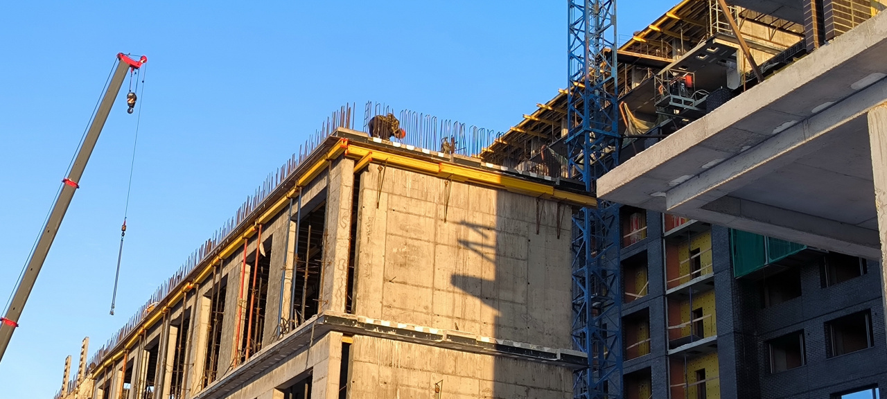 Продолжаем строительство 4-й очереди сити-квартала. Мы снова кладем кирпич, монтируем утеплитель, устанавливаем окна, штукатурим стены, прокладываем электрокабели и крепим вентиляционные короба. На стройплощадке сверлят, варят, скребут и стучат — все, как заведено в нашем деле. Изо дня в день выверяем проектные решения и приближаем сдачу объекта.